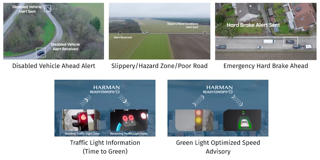 Ready Aware offers over 15 use cases that help improve a driver’s situational awareness and meet EU-NCAP 2026 requirements. The broad set of use cases include road hazards, traffic light, and V2N2V (Vehicle to Network to Vehicle) use cases such as Vehicle Hard Braking Ahead and Disabled Vehicles Ahead.